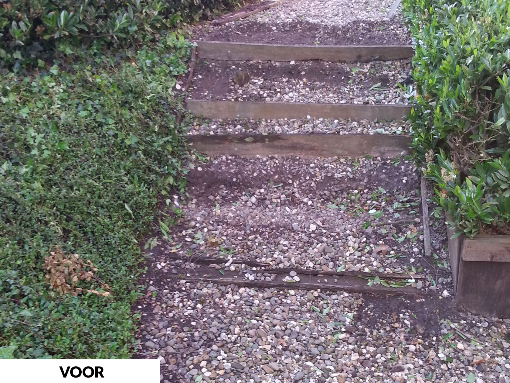 Buitentrap opgebouwd van azobé hout, de trapbomen zijn gevreesd, en de treden van de trap zijn van bede vlonderdelen. De trap is voorzien van bevestigingen van RVS.